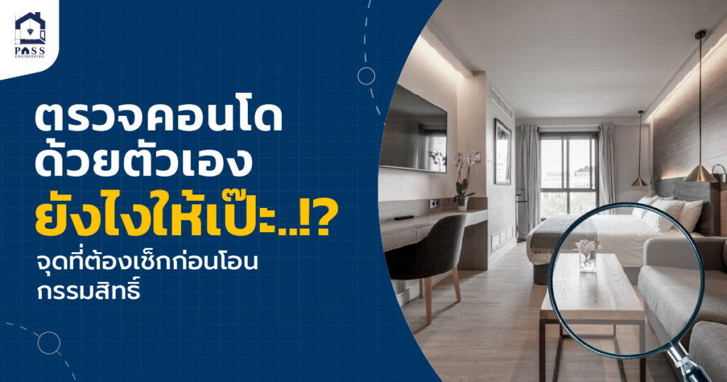 การตรวจคอนโดเป็นขั้นตอนสำคัญที่ผู้ซื้อไม่ควรพลาด เพื่อที่จะได้ห้องคอนโดสวยตามแบบที่ต้องการแล้ว ห้องต้องอยู่ในสภาพที่ดีสมบูรณ์พร้อม ไม่มีปัญหาใดๆ ควรตรวจเช็กทุกซอกทุกมุมอย่างละเอียด หากมีจุดใดบกพร่อง ชำรุด เสียหาย ต้องรีบแจ้งทางโครงการให้ดำเนินการแก้ไขก่อนจะรับโอนคอนโด ป้องกันปัญหาไว้ล่วงหน้า เพื่อที่จะได้เข้าอยู่อย่างสบายใจ สำหรับท่านใดที่สะดวกตรวจคอนโดเอง สามารถใช้บริการของเรา Pass Engineering รับตรวจคอนโด ทุกโครงการ วิศวกรตรวจคอนโดผู้เชี่ยวชาญ ประสบการณ์ตรวจมากกว่า 1000 โครงการชั้นนำ ให้บริการตรวจคอนโดในเขตพื้นที่กรุงเทพฯและปริมณฑล
